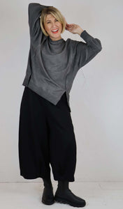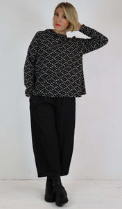Thanny Black Jersey Wide Crop Trousers